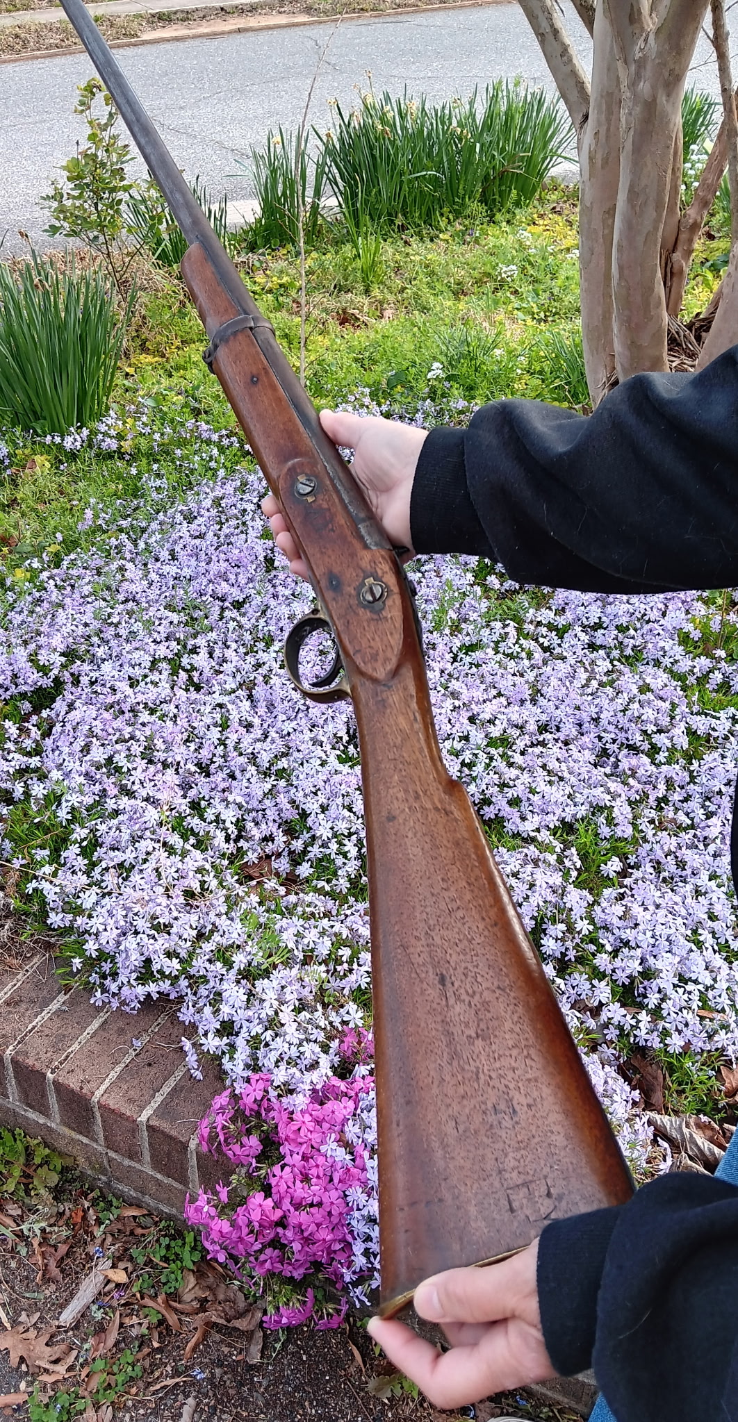 We went to the Civil War Museum in Harrisburg, PA, and saw an 1853 Enfield rifle like this one, but it had wood going all the way up the barrel. The display said many rifles were found like this with some barrels bent and the wood broken off where the soldiers resorted to using them as clubs. I should add that it is definitely heavy enough to pack a serious wallop.