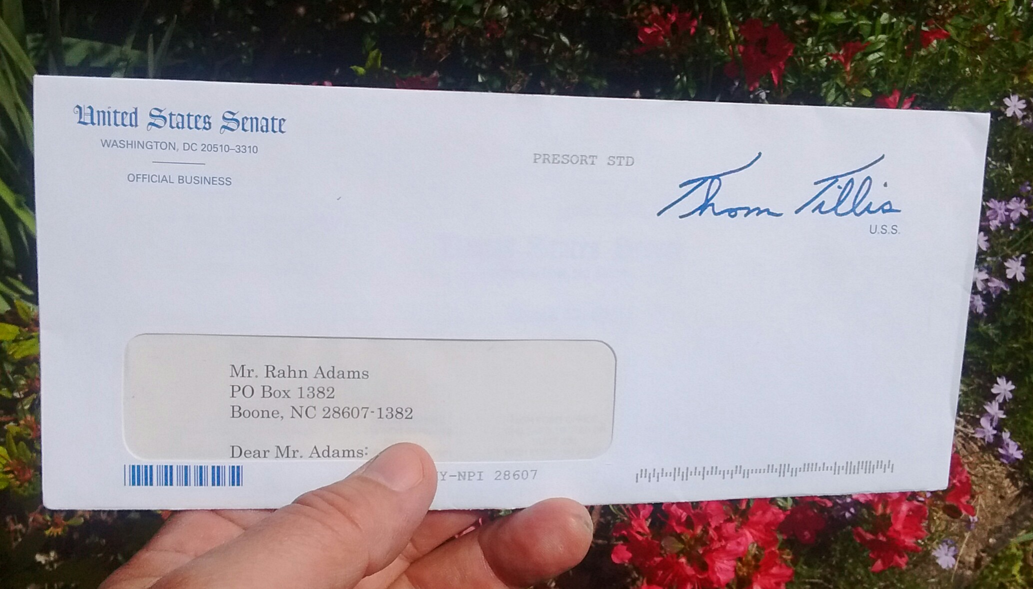 Another return letter from Sen. Tillis — ironically, more proof that he isn’t responsive to his constituents